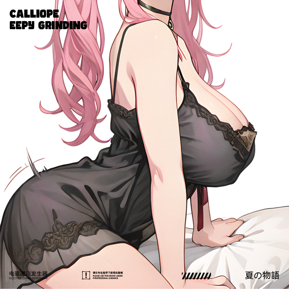 CG Collections of Calliope Mori grinding in her bed with her pillow and toy and enjoying herself